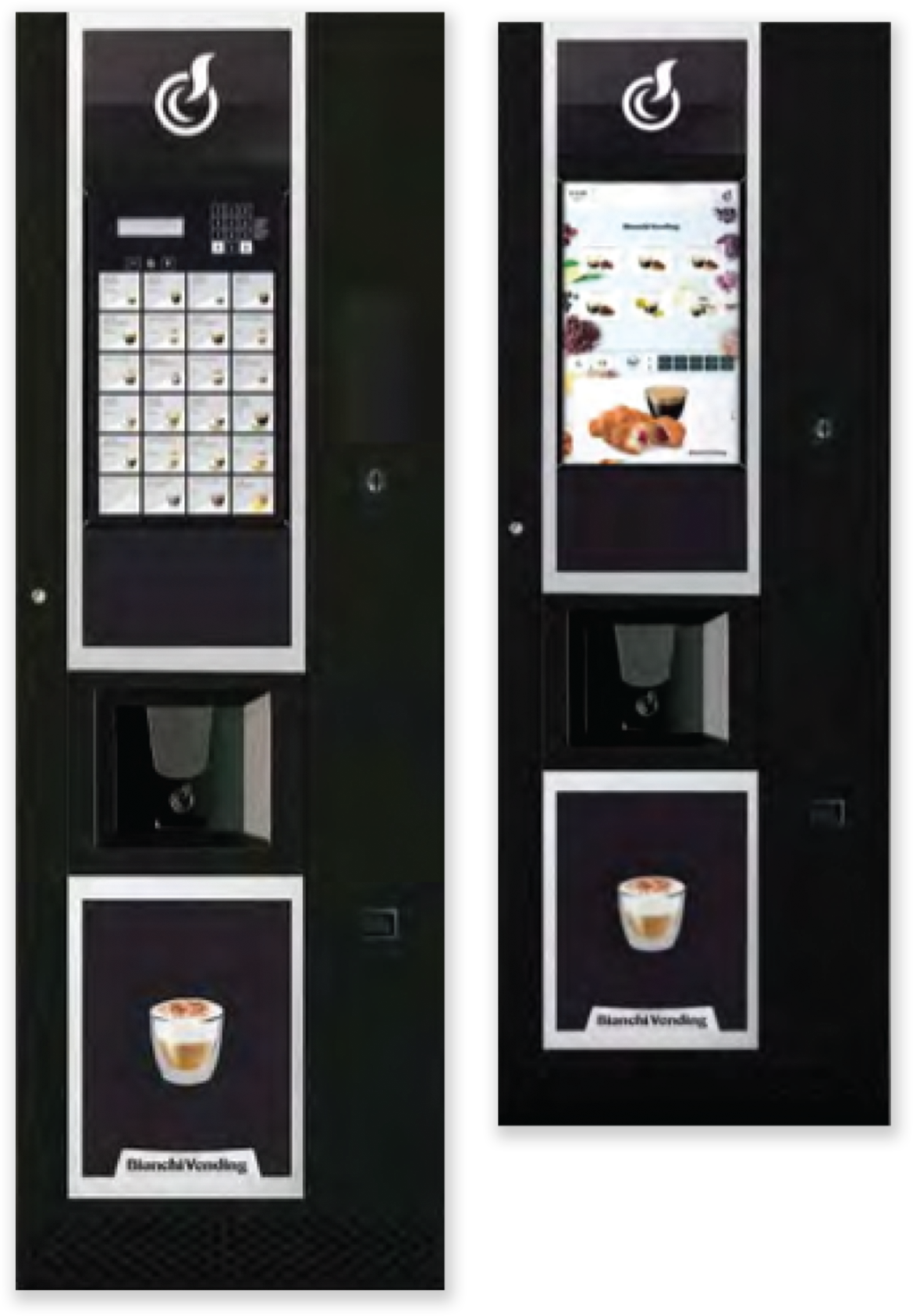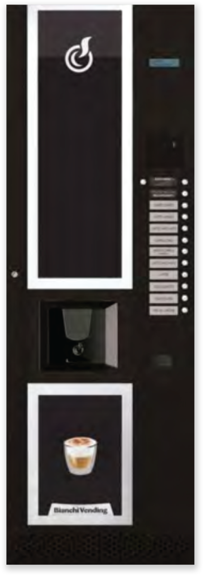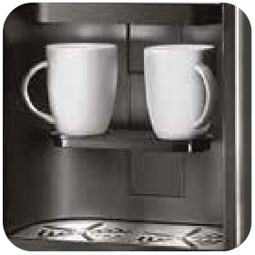 Puntos de entrega separados, café, chocolate y bebidas mixtas a la izquierda y agua a la derecha