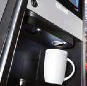 La amplia área de entrega con portavasos ajustables le permite llenar cafeteras.
