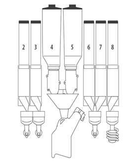 | Coffee beans hoppers | 1 | 2 | 1 VACUUM hopper (VH) | 2 of which 1 VACUUM (VH) | |||