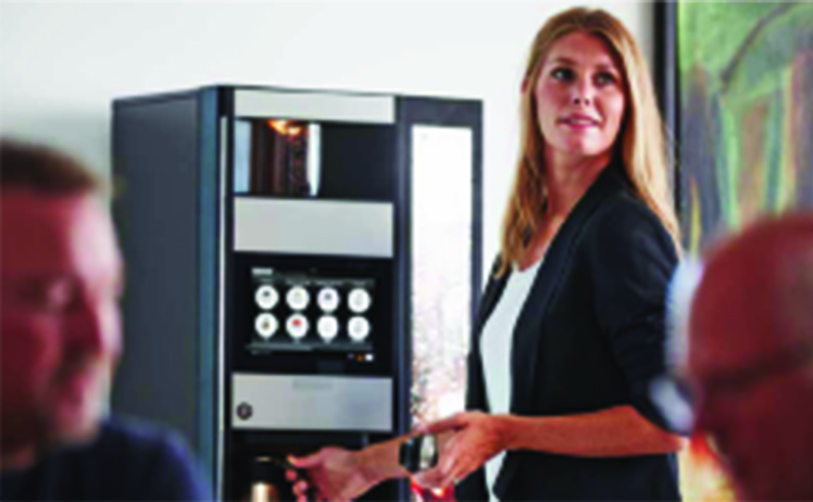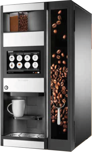Puntos de entrega separados, café, chocolate y bebidas mixtas a la izquierda y agua a la derecha
